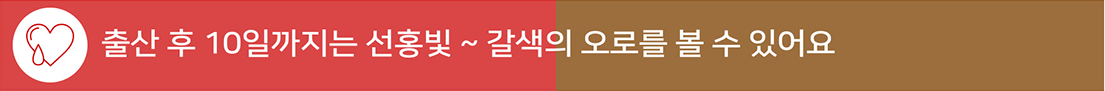 그 후 약 10일까지는 오로가 선홍빛을 띠면서 점점 갈색으로 변하고, 양이 줄어듭니다.